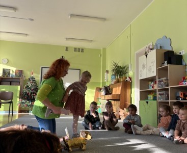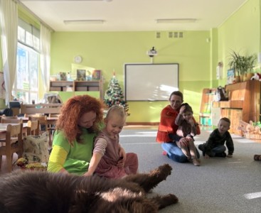 Dziś w ramach projektu "Przedszkolak dziś, dorosły jutro" odwiedziła nas Pani Kasia - właścicielka i behawiorystka razem z psem Kawą. Dzieci zapoznały się z zasadami zbliżania się do psów, głaskania oraz dawania im smaczków. Dzieci ochoczo słuchały, a później podchodziły do przyprowadzonego pieska i przytulały go.