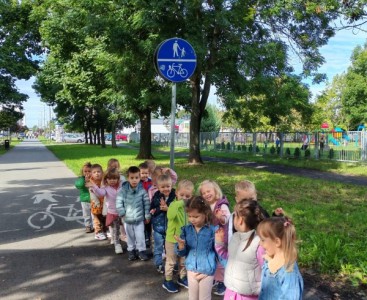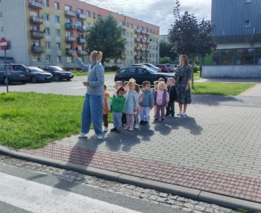 Spacer po okolicy przedszkola - utrwalenie zasad bezpieczeństwa i znajomości podstawowych znaków drogowych