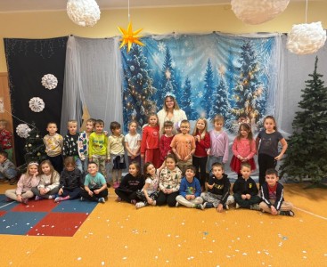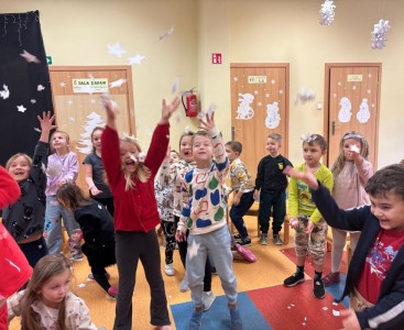 Pszczółki brały udział w zajęciach muzyczno- ruchowych zorganizowanych dla wszystkich przedszkolaków przez panią Patrycję Słaboń w związku z powitaniem nowej kalendarzowej pory roku - Zimy.